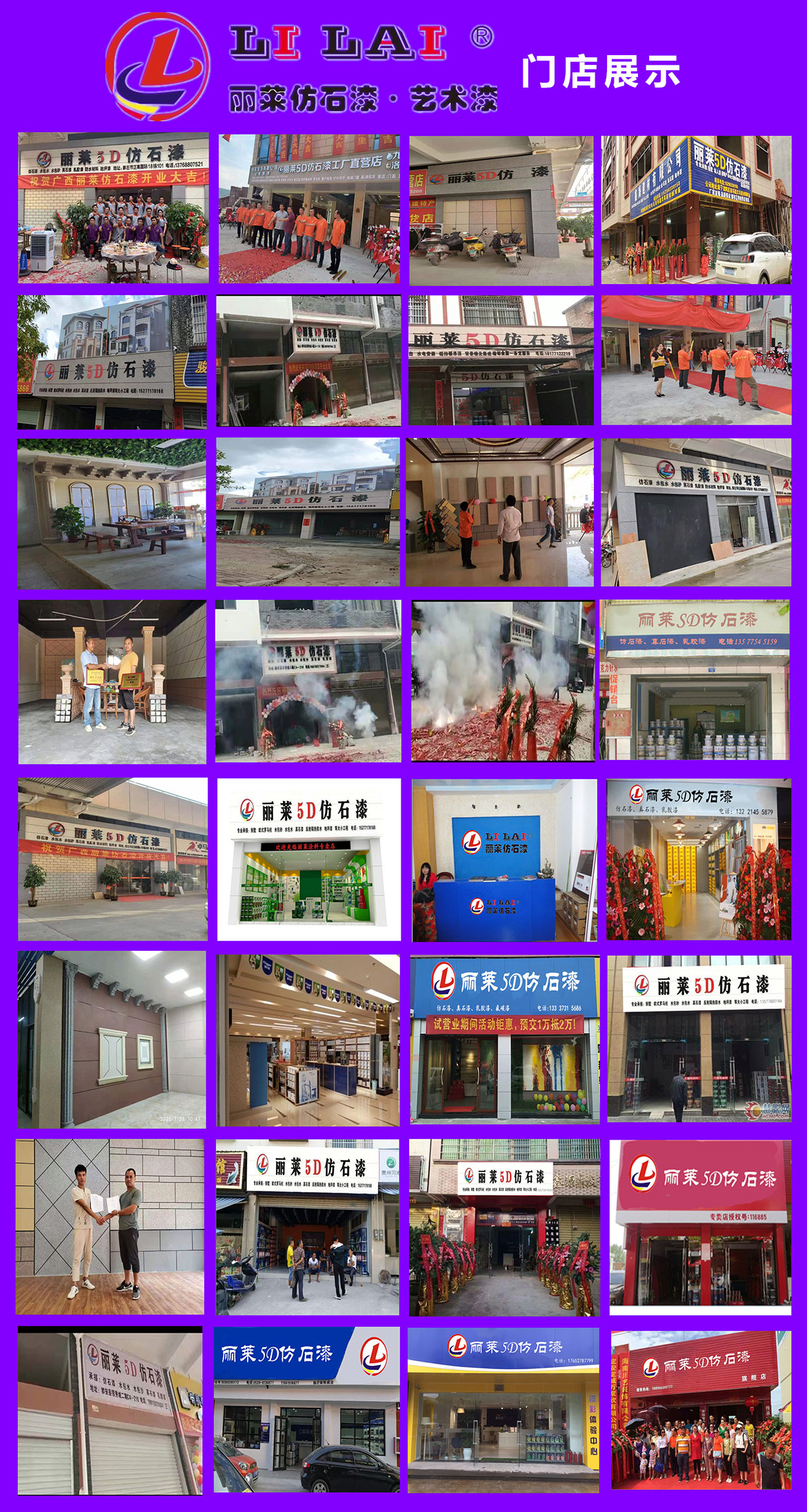 公司旗下核心品牌“麗萊”“杰涂士“,主要產品“仿石漆”、“藝術漆”、“真石漆”、“水生漆”及配套輔材全系產品均為綠色環(huán)保節(jié)能產品。憑借完善的研發(fā)、制造和服務體系,能為客戶定制和提供近千種仿石效果和藝術涂裝效果方案,為了能夠滿足不同層次、不同需求的家裝及工裝需求,公司打造了1000多平方米的大型展示館及綜合體辦公大樓,以供客戶的各種風格需求。截至2018年累計工程案例數千個,公司旗下麗萊仿石漆品牌已逐步替代瓷磚和干掛石材,成為廣大外墻涂裝用戶的信賴產品。